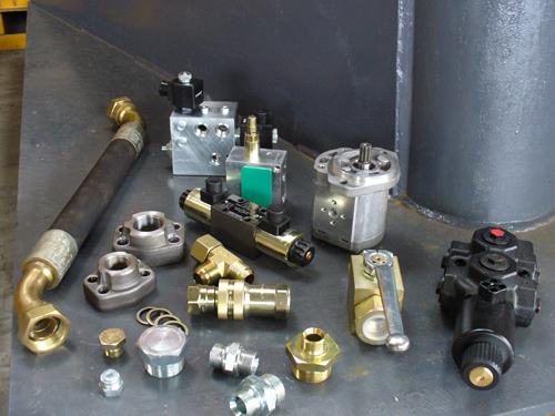 - componenti per impianti idraulici: tubi flessibili ad alta pressione, elettrovalvole, regolatori di portata, valvole a sfera, innesti rapidi, riduzioni, tappi, raccordi di tutte le principali misure unificate, guarnizioni, paraolio...